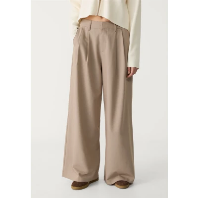 WIDE-LEG WITH BUTTONS - Trousers - mottled light brown