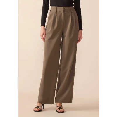 SMART WIDE-LEG WITH BUCKLE DETAIL - Trousers - mottled light brown